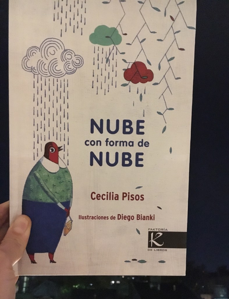 Nube con forma de nube se publicó hace unos años, quizás demasiados para la tiranía de la novedad editorial: 2016. Lo editó Kalandraka en la colección Orihuela, dedicada a libros de poesía, y además publican, gracias a un acuerdo con el ayuntamiento de Orihuela, al ganador de cada año del Premio Internacional de Poesía para niños y niñas “Ciudad de Orihuela”. El ilustrador es Diego Bianki, y el trabajo que hizo no solo es precioso sino que cada dibujo ofrece una interpretación inesperada, por así decirlo, del poema que acompaña. Son ilustraciones que abren un espacio para explorar, para jugar a combinar las imágenes con las palabras. Como acostarse de panza al cielo y descubrir en las nubes animales, personas, cosas…