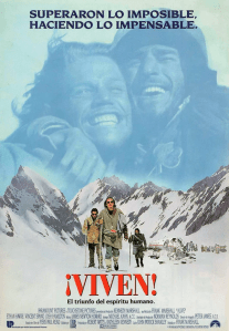 Quedé tan copada que pensé que sería un buen plan pegarse un viajecito a la adolescencia y volver a ver ¡Viven! (1993), de Frank Marshall, protagonizada por Ethan Hawke y que cuenta la misma historia. No pudimos pasar la media hora. Por supuesto que los efectos son berretas mirados con la tecnología de hoy, pero no es eso, son las malas decisiones del guion, las tomas innecesarias, la fotografía insípida, ¡esa música constante de peligro inminente! Que una escena sirva como botón de muestra: el avión está en pleno vuelo, alegría entre lxs pasajerxs, un oficial de abordo les pregunta a los pilotos si quieren algo para tomar, a lo que uno contesta: «Por favor un té». El oficial se va hasta el fondo del avión y vuelve con un mate, ¡un mate que es filmado en primer plano durante varios segundos! Se lo da al piloto y este empieza a batirlo con la bombilla cual café instantáneo. No teníamos lectorxs sensibles en aquellos tiempos.