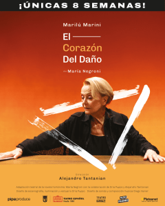La semana pasada fuimos al teatro a ver El corazón del daño, dirigida por Alejandro Tantanian y protagonizada por Marilú Marini. Fui con mucha expectativa, la obra es la adaptación teatral de la novela homónima de María Negroni, un texto que me gustó mucho. Marini es magnífica, su presencia escénica, la certidumbre de sus gestos, la modulación y los timbres de su voz, todo la hace realmente única e hipnótica. Y sin embargo la obra no me encantó. Supongo que si manejara herramientas específicas de la crítica teatral podría argumentar y analizar más contundentemente el porqué de esta situación. Quiero decir, si todo por separado funciona, o mejor dicho, me gusta, por qué no entonces también en su conjunto.