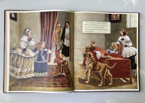 Coda II. Hay una cantidad de libros sobre arte para chicxs que es impresionante. Claro, también hay libros que son muy malos, demagógicos, sosos. A este grupo pertenece La princesa y el pintor, de Jane Johnson. Se lo compré hace muchísimos años a mi hijo más grande. La memoria hace de las suyas y lo recuerdo como un libro lindo, divertido, una puerta de entrada para charlar sobre la pintura, los reyes, Velázquez, España… Pero hoy que lo releo no puedo más que reconocer que el texto es acartonado y las ilustraciones… feas. Y encima hay enanos llamados explícitamente enanos. (Qué mala madre, che).