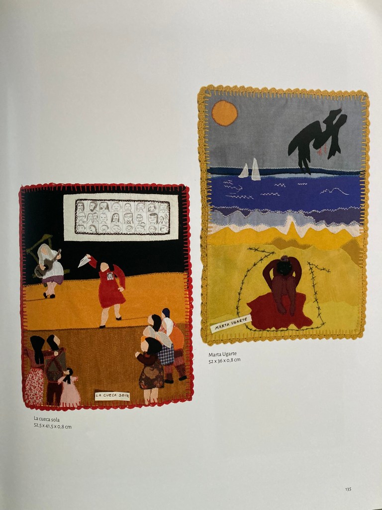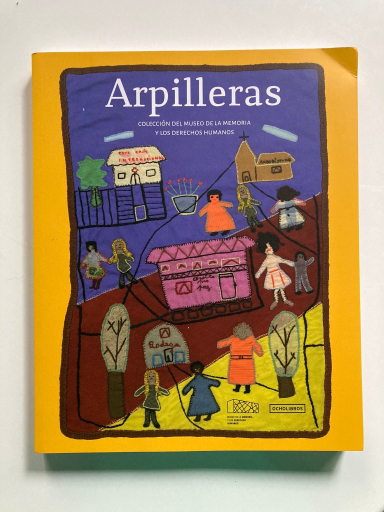 El año pasado pude conocer el Museo de la Memoria y los Derechos Humanos de Santiago, y había una muestra con varias de estas arpilleras. No saqué fotos porque a pesar del peso del papel ilustración no lo dudé, y me volví con este catálogo fabuloso.