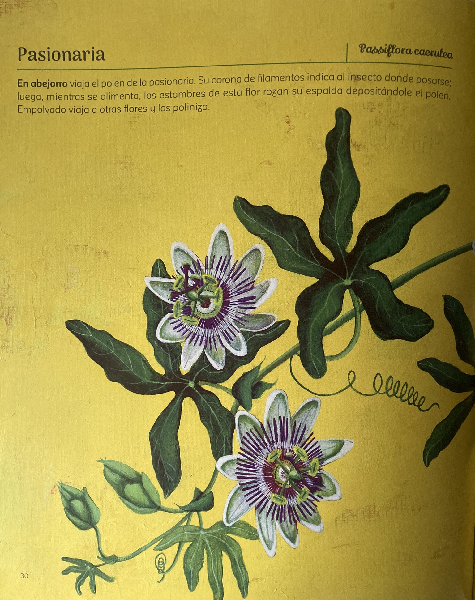 En el país habitan más de diez mil especies de plantas silvestres, y en el libro se reproduce una selección de varias de ellas: una ilustración bellísima va acompañada por una guía que indica el nombre común, el nombre científico, los polinizadores, la disposición de las flores y qué tipo de planta es. En la presentación del libro se menciona la importancia de tener contacto con estas plantas desde chicos: es fundamental conocerlas para poder conservarlas y protegerlas. Y de grandes todavía estamos a tiempo, creo, y por eso este libro se vuelve valioso y necesario para todxs.