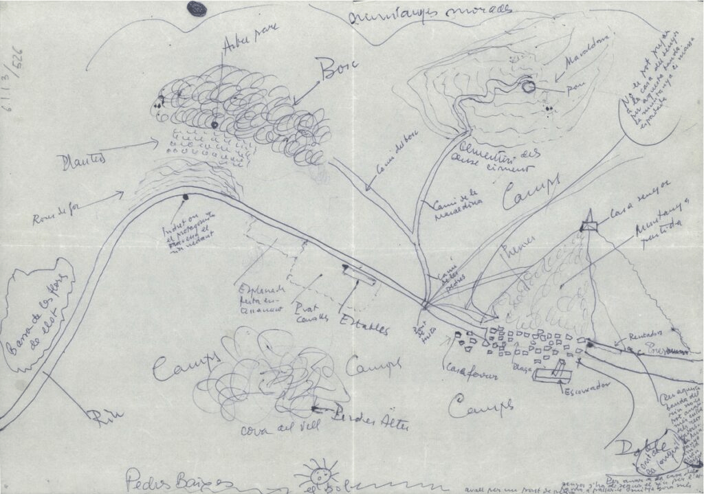 El laberinto de La muerte y la primavera, croquis dibujado por Rodoreda