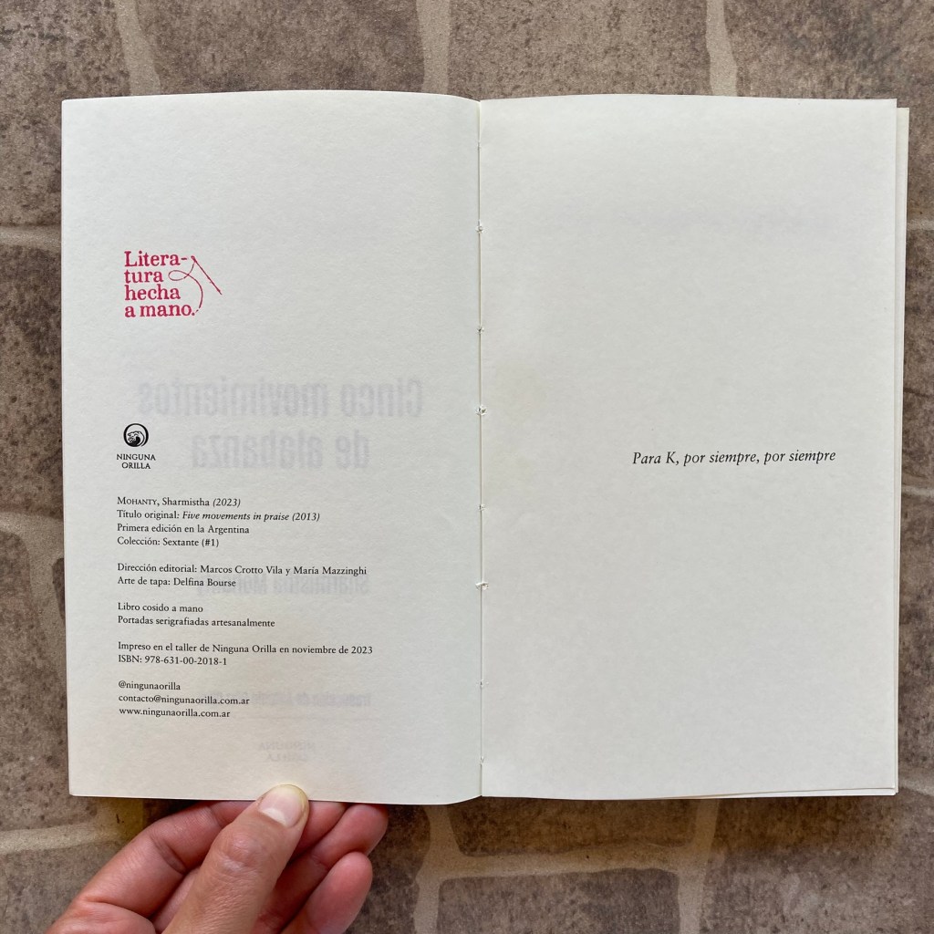 Mejor volvamos al tema que el título de este posteo, sin misterio alguno, anticipa: Sharmistha Mohanty. Recorriendo la última FED me encontré con este libro de una autora que desconocía por completo, como también a la editorial artesanal maravillosa que la publicó: Ninguna orilla.