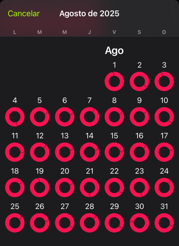 Una noche di mil vueltas a la plaza que está cerca de casa. Había estado todo el día trabajando en la computadora y la noche me encontró con apenas 20 pasos hechos. Ver el circulito rojo completo se vuelve adictivo. ¿O es voluntad? ¿Prepotencia arltiana?