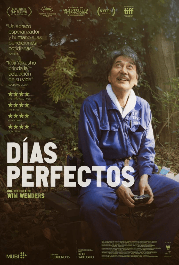 Coda 1. ¿Cómo no mencionar la maravillosa película de Win Wenders que tiene (casi) el mismo título? Hirayama es un hombre que elige llevar una vida austera y trabaja limpiando baños públicos, ya sé que no son los baños de Constitución, pero no deja de ser lo que elige (y queda clarísimo que es una elección genuina a partir de la escena con su hermana, que claramente pertenece a una clase social alta). Es un hombre alegre, sensible y amable que se conoce a sí mismo, que está en profunda conexión con quienes lo rodean y con el entorno, que acepta que tienen que existir días malos para que también haya otros perfectos.